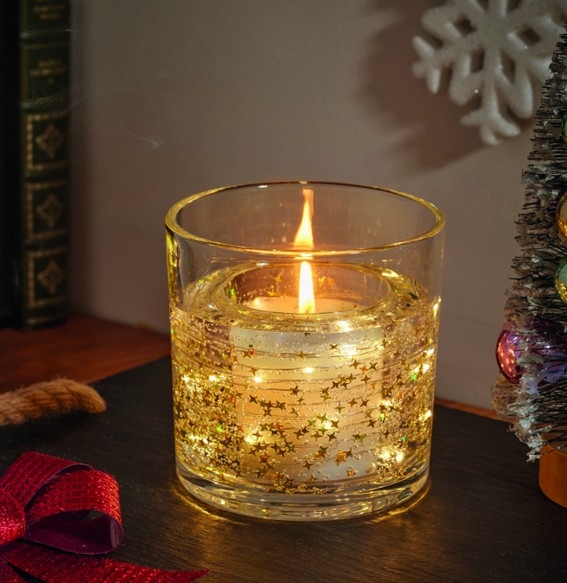 Design: Wax candle inside glass jar with LED illumination