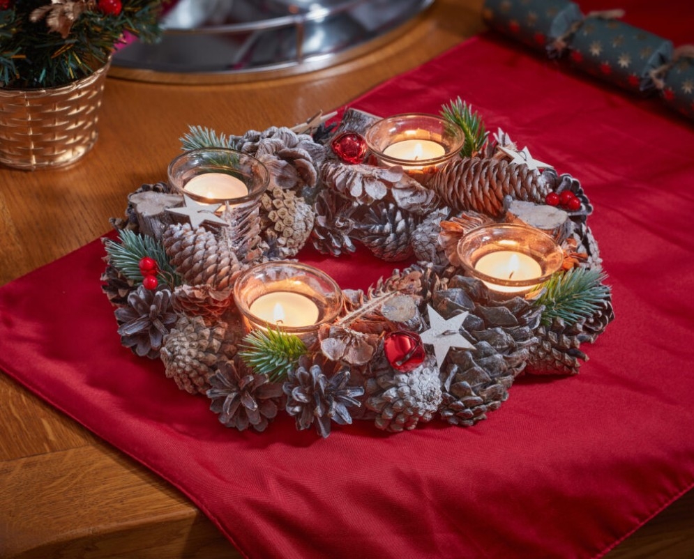 DescriptionThree Kings FrostPine Ring Quartet Christmas Candle Holder 33cm