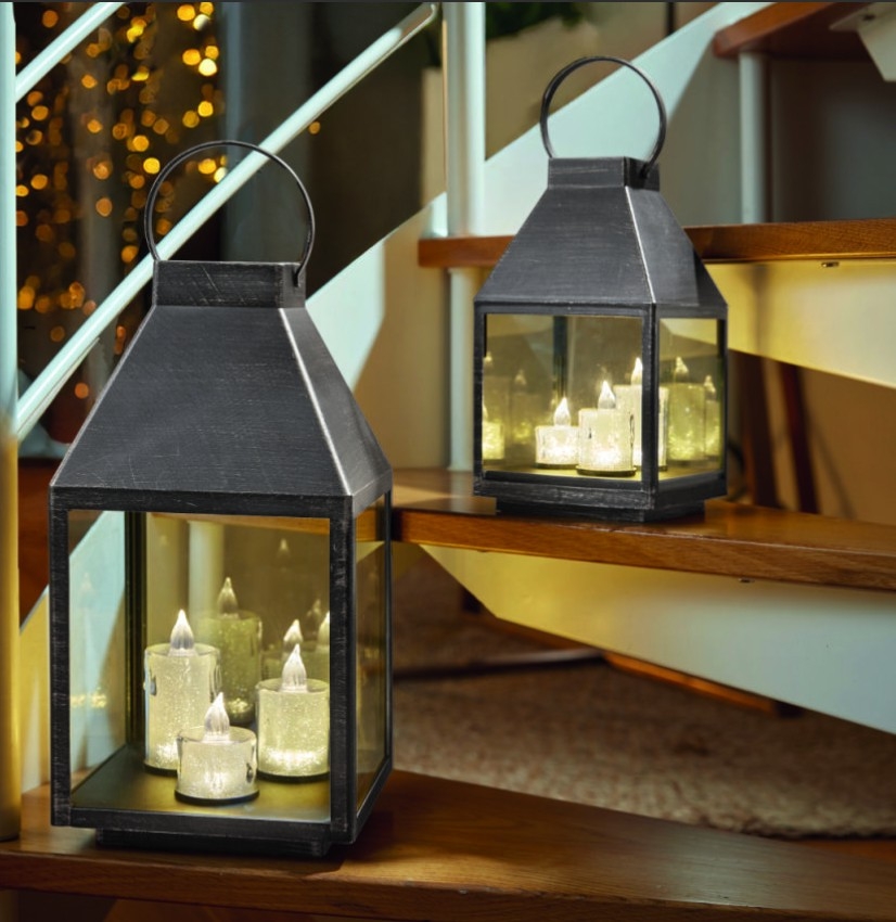 Gorgeous glittering triple pillar candle lighting effect Height: 25cm