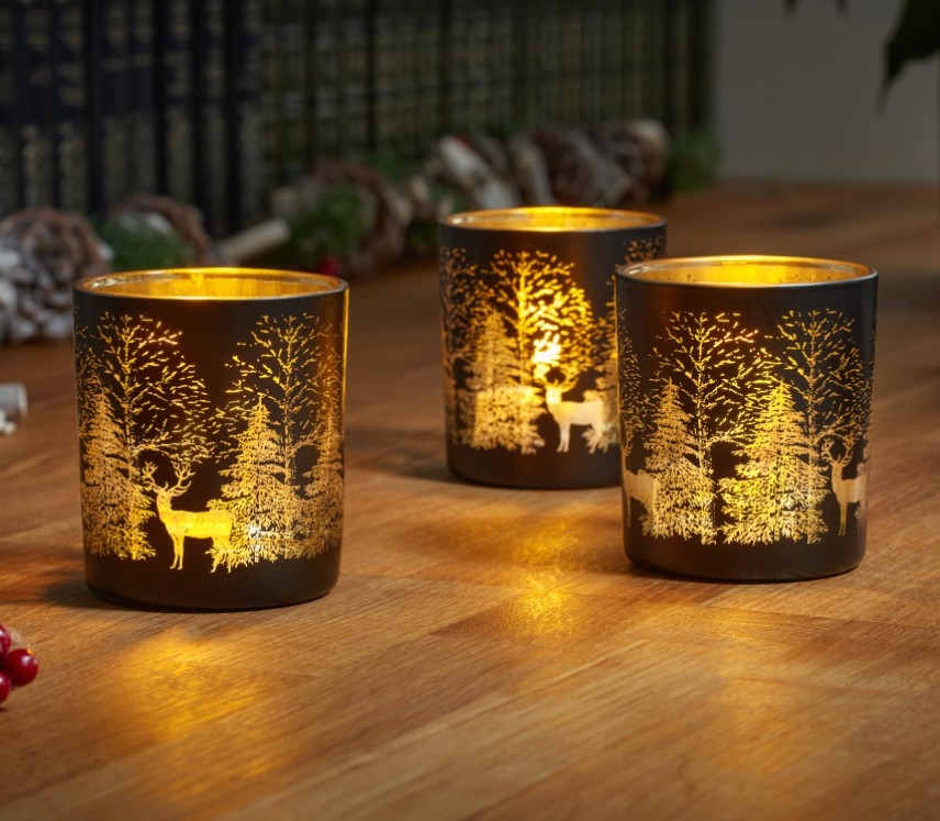 Add a sprinkle of elegance this Christmas with these glamorous T-light holders Height: 8cm